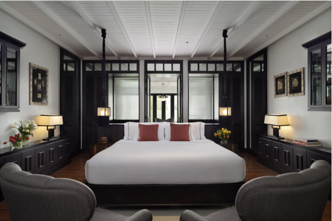 The Siam Hotel客房之間都有一定的距離,彼此之間保留一定的社交距離,為客人建立友好交流的公區(qū)。這里最小的客房也有80平,起居室、臥室、陽臺、洗漱間里都帶著清新綠植,陽光、鮮花和草木能讓人每天都有一個好心情。